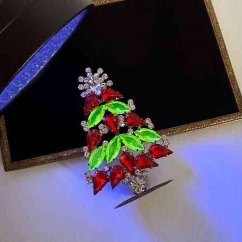 チェコ製ウランガラスのクリスマスツリー 225 ウラン×赤