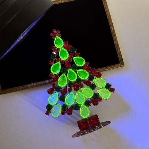 チェコ製ウランガラスのクリスマスツリー 229 ウラン×緑赤