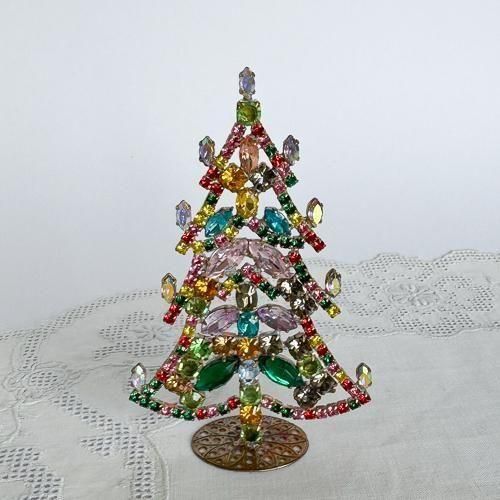チェコ製ガラスストーンのクリスマスツリー 215 マルチカラー10.5cm