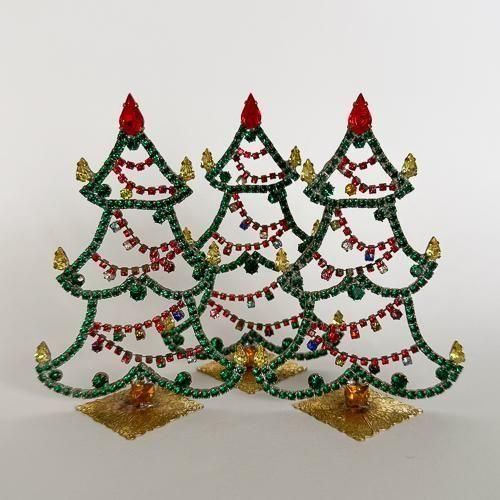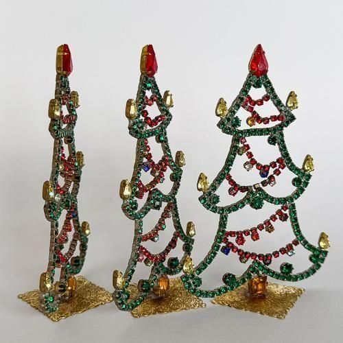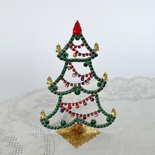 チェコ製ガラスストーンのクリスマスツリー 217 緑×赤ゆらゆら
