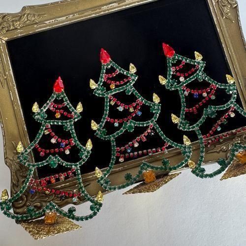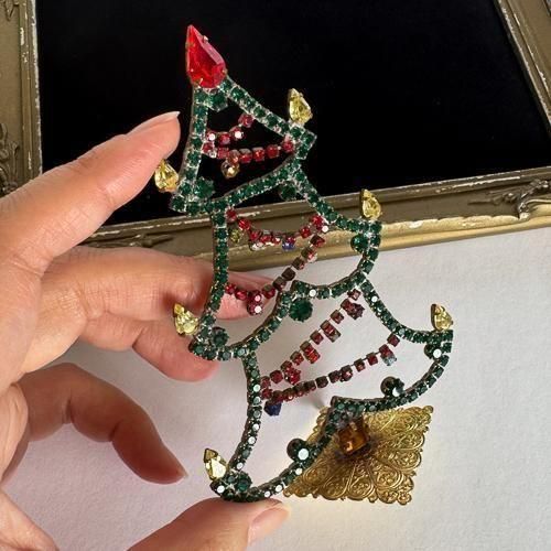ツリーに飾られているモールのように斜めに配置されている赤いラインストーンは縁のみ固定されているため、手で触るとユラユラと揺れます。