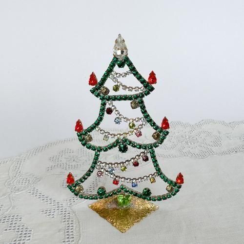 チェコ製ガラスストーンのクリスマスツリー 218 緑×クリアゆらゆら