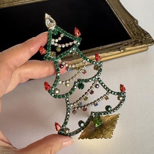 ツリーに飾られているモールのように斜めに配置されているラインストーンは縁のみ固定されているため、手で触るとユラユラと揺れます。