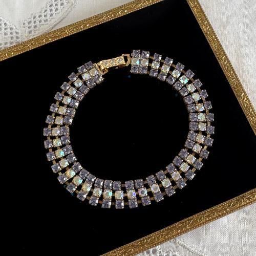 チェコ製 ガラス製ラインストーンのブレスレット 薄紫