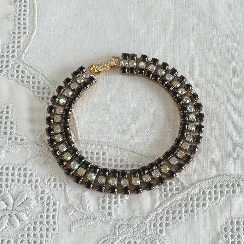 チェコ製 ガラス製ラインストーンのブレスレット 黒