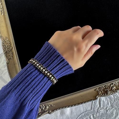 ブレスレットの長さが少し長めですので、手首の細い方はニットの上に重ねて着用するなどしてお楽しみください。