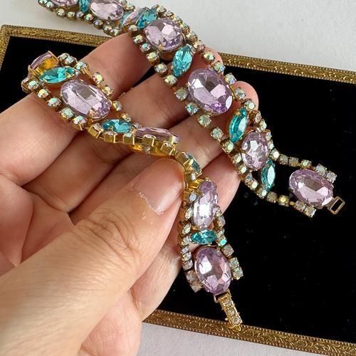 チェコ製 ガラス製ラインストーンのブレスレット 紫×水色