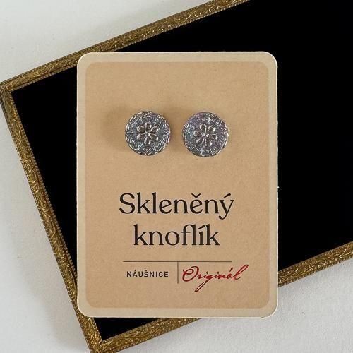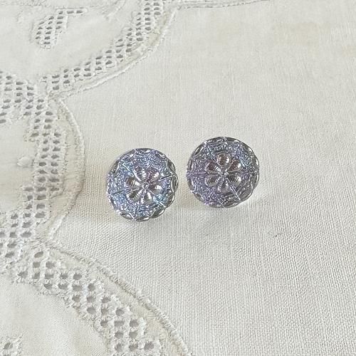 チェコ製ガラスボタンのピアス/イヤリング お花 ヴィトラルライト