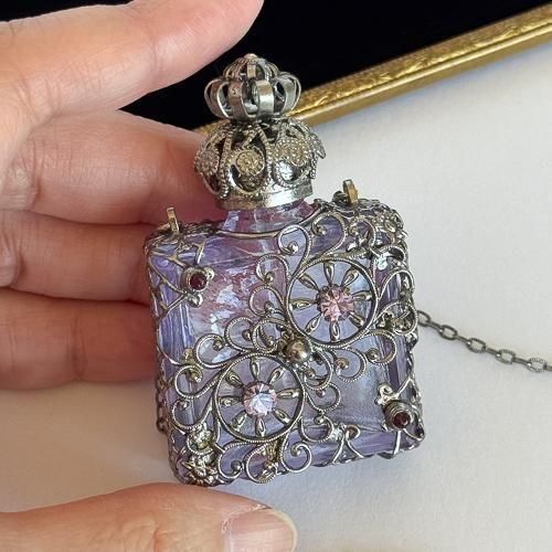 チェコ 装飾付き香水瓶 451 アレキサンドライトガラス 斜め花模様