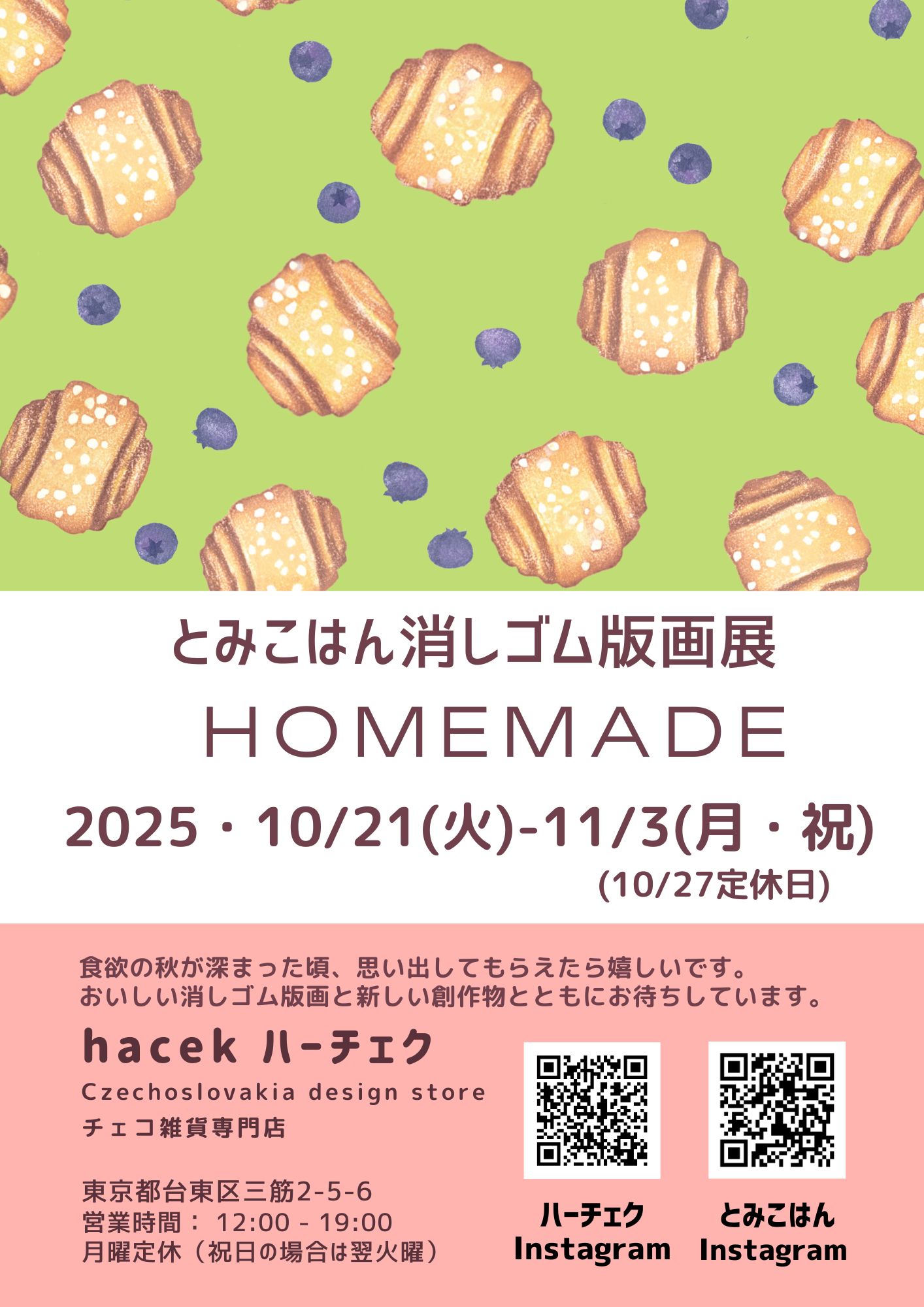 とみこはん 個展 「HOME MADE」 2025年10月21日(火)から11月3日(月・祝)まで ※10月27日(月)定休日 ハーチェクでは今年もとみこはんの個展を開催します 消しゴム版画による原画、陶器やシルクスクリ […]