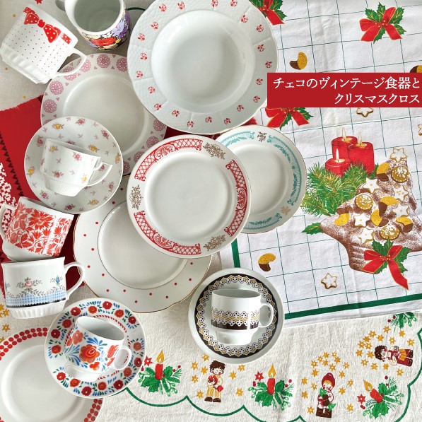 チェコのヴィンテージ食器とクリスマスクロス 2024年11月19日(火)から 12月1日(日)まで チェコで買い付けたヴィンテージの食器とクリスマスにぴったりな布もののイベントです。