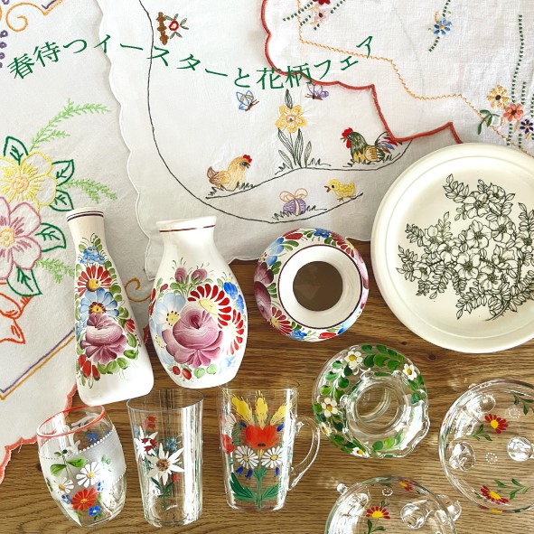 春待つイースターと花柄フェア 2024年2月27日(火)から3月10日(日)まで うさぎやヒヨコが描かれた可愛いイースタークロスと、花柄が春らしいガラスや陶器をたくさん並べました。どれもチェコへ行き買い付けてきたヴィンテ […]